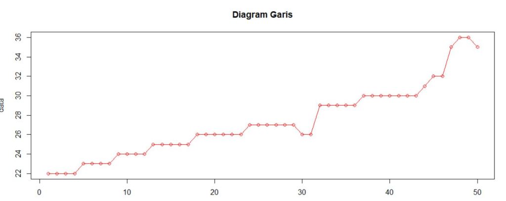 Untuk membuat grafik garis dengan titik o (main=”Diagram Garis” untuk membuat judul) (type=”o” untuk membuat batas garis dengan icon o)